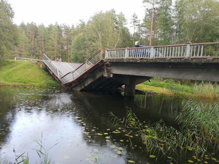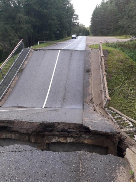 Обрушившийся мост находится на трассе Пустошка-Себеж. В МЧС подчеркнули, что отрезанных аварией населенных пунктов нет, организован объезд по трассе «М-9».