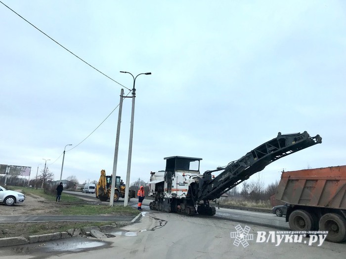 Как передаёт корреспондент Интернет-портала ВЛуки.ру, 15 ноября строители проводят фрезерование отдельных участков дороги.