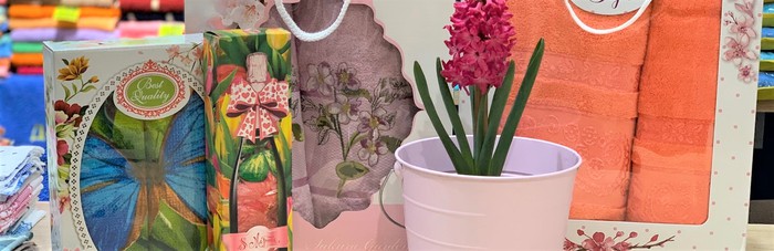 С пожеланиями семейного счастья, преподнесите им празднично оформленный набор из скатерти и салфеток на 8 персон или набор полотенец — в «Далице» к празднику много подарочных коробочек на любой вкус и кошелёк!