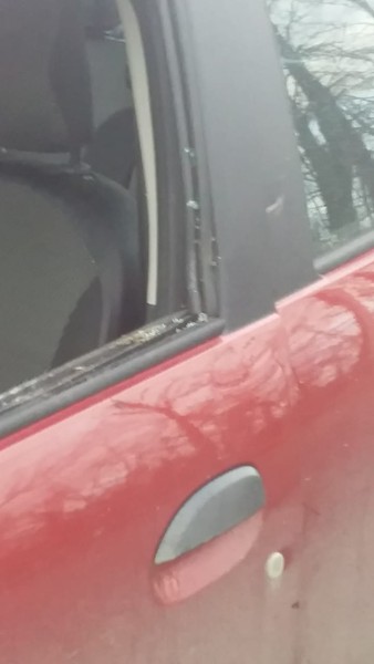 В результате разбило стекло водительской двери, а самое главное – нанесены травмы водителю.