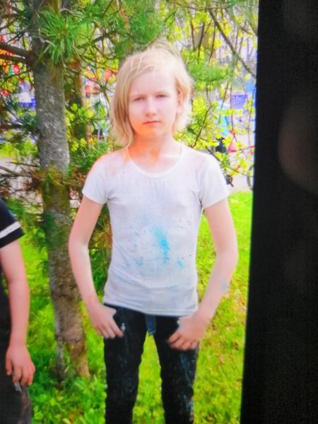 Девочка Гавриловец Елизавета Викторовна 25.02.2006 г.р. была одета: серая шапка, с помпоном и розовой надписью, синяя куртка с капюшоном, куртка имеет принт мозайки с серо- бирюзовыми вставками, чёрные брюки, белые кроссовки.