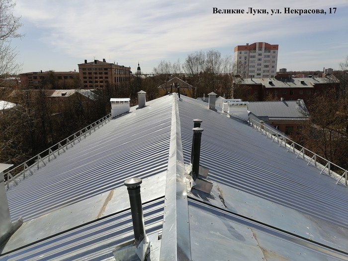 В настоящее время завершён капитальный ремонт крыши дома № 17 на ул. Некрасова. Рабочие подрядной организации ООО «Малая Механизация» выполнили демонтаж старого покрытия и монтаж новой кровли, полную замену обрешетки, провели работы по огнебиозащите деревянных поверхностей крыши, ремонт деревянных элементов конструкций, устройство теплоизоляции чердачного помещения. Проведена работа по ремонту вентиляционных шахт, устройству зонтов, слуховых окон, канализационных выпусков.