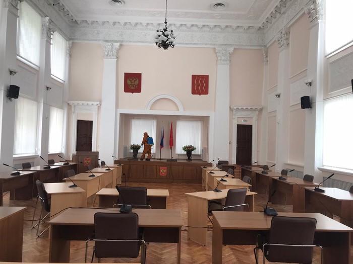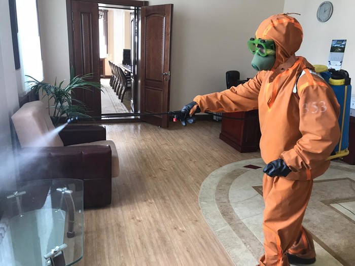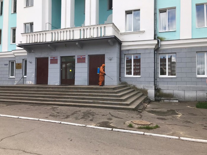4 июня сотрудники МЧС провели санитарную обработку помещений железнодорожного и автовокзала города Великие Луки, районного суда, Администрации города и района, управления образования и ЖКХ города.