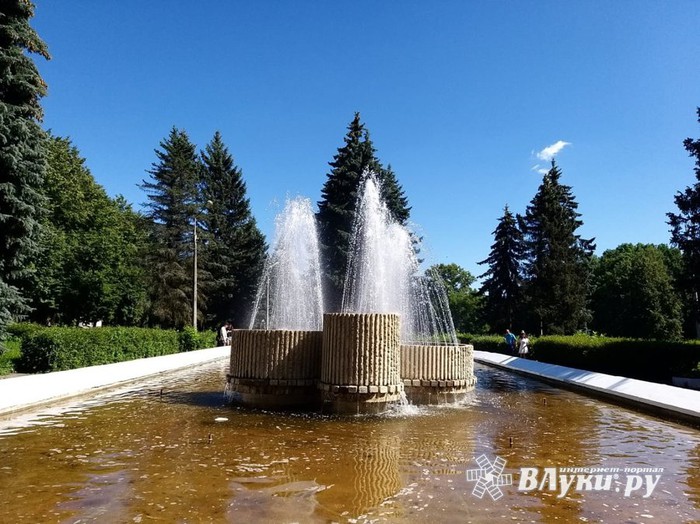 Как передаёт корреспондент интернет-портала ВЛуки.ру, включили фонтан «Три поколения» на площади Матросова.