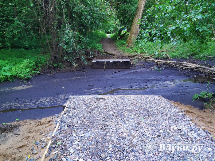 Как передаёт корреспондент интернет-портала ВЛуки.ру, в парке уже появилась пешеходная дорожка, для строительства которой, по словам специалистов, применялись технологии используемые для обустройства дорожек в парках Латвии.