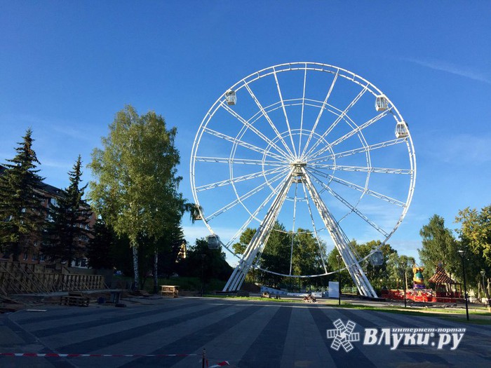 На колесе обозрения в Парке культуры и отдыха начался монтаж кабинок, передаёт корреспондент интернет-портала ВЛуки.ру.