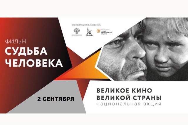 В районных кинозалах и культурно-досуговых организациях Псковской области 2 сентября зрителям бесплатно покажут ставшей культовой драму Сергея Бондарчука «Судьба человека» и документальную ленту «Простые главные слова» Сергея Майорова. Кинопоказ состоится в рамках Всероссийской акции «Великое кино Великой страны», которая в свою очередь является частью мероприятий «Года памяти и славы 2020 года».