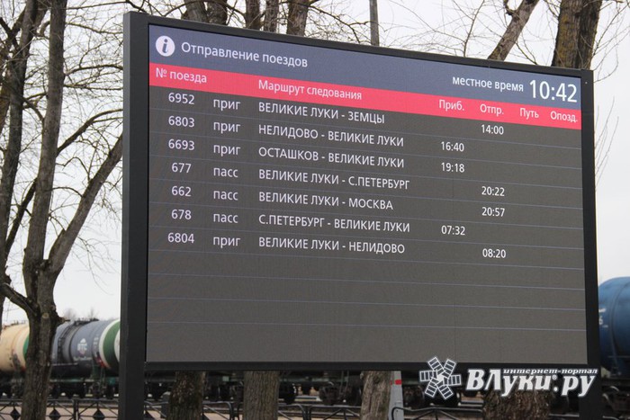 Так, поезд №293/294 будет отправляться с Витебского вокзала Санкт-Петербурга 30 декабря 2020 года в 09:50 мин. и прибывать в Великие Луки в 17:46, время в пути следования составит 7 часов 56 минут.