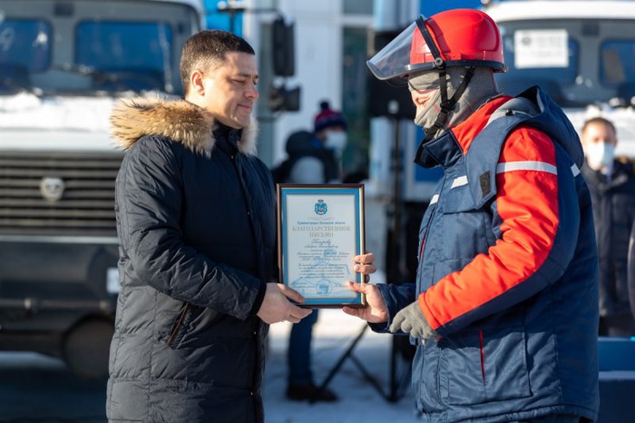 «Сегодня здесь собрались люди, которые по несколько суток находились в лесах, без сна и отдыха, в сложных погодных условиях ликвидировали последствия природных катаклизмов. Хочу сказать вам искренние слова благодарности от всех жителей области, поблагодарить за ваш самоотверженный труд», — заметил Михаил Ведерников и вручил десяти работникам сетевой компании Благодарственные письма Администрации Псковской области.