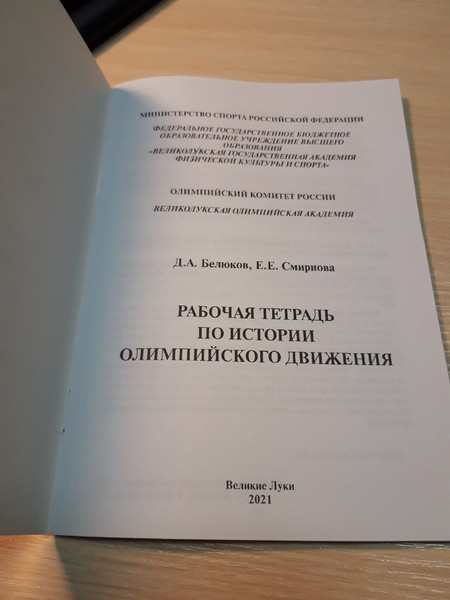 В Великих Луках издана Рабочая тетрадь по истории олимпийского движения, сообщил на своей странице в «ВКонтакте» директор музея, декан социально-гуманитарного факультета ВЛГАФК Дмитрий Белюков.