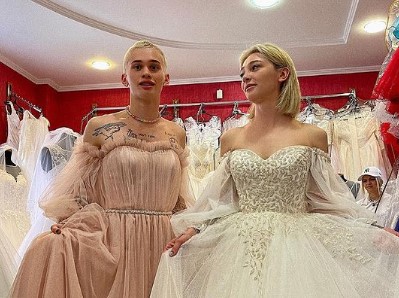 В Инстаграм Насти Ивлеевой появились фото из свадебного салона в Великих Луках. Она и блогер Даня Милохин позируют в свадебных платьях.
