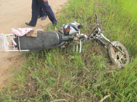 ДТП произошло в деревне Щенайлово 28 июля около 7.00. Водитель мотоцикла «Вираго», мужчина 1949 года рождения, перевозил пассажирку 1956 года рождения. В процессе езды произошло отсоединение вилки переднего колеса от рамы, в результате чего мотоцикл опрокинулся.