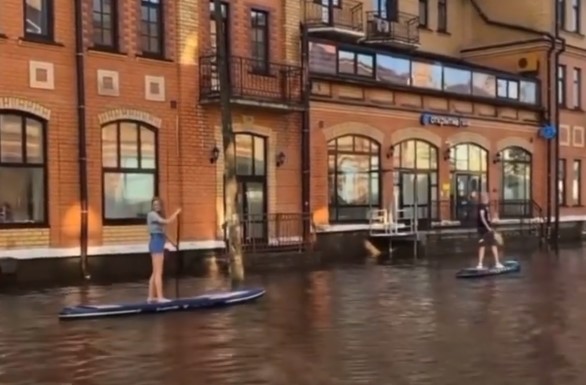 Вчера этот вихрь успел краем зацепить отдельные районы северо-запада России. Например, утонул Псков: по улицам можно было плавать на досках для сёрфинга!