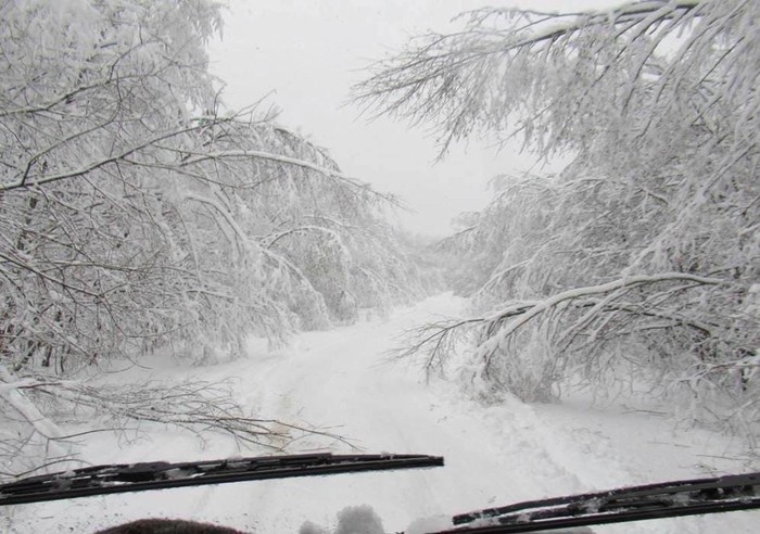 Бригады компании вынуждены пробираться к линиям электропередачи через сугробы и упавшие деревья.