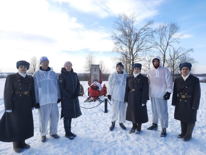 В 13:00 был дан старт патриотико – туристическому маршруту «Тропа героя». Отряд «Юнармии» Лычевской средней школы имени Матвея Кузьмина, совместно с сотрудниками МБУК «ГДК имени Ленина», проследовали на лыжах до места, совершения подвига (Малкинская высота).