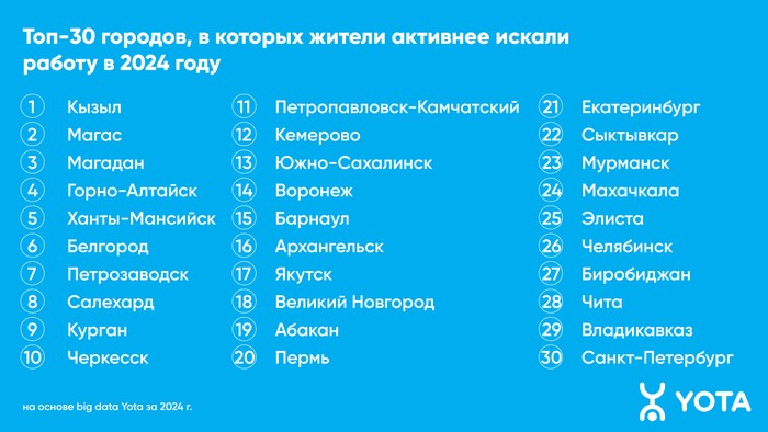 По данным МегаФона в Северо-Западном федеральном округе жители Пскова занимают восьмое место, а больше всего интернет-трафика на поиск работы через онлайн-сервисы вслед за петербуржцами тратят жители Вологды, Калининграда, Мурманска и Архангельска. При этом в Пскове у абонентов более 87% интернет-трафика пришлось на HeadHunter.