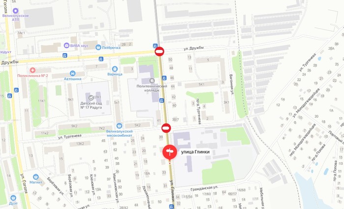 С 09:00 6 июня до 17:00 10 июня 2022 года временно прекращено движение транспортных средств на участке автомобильной дороги на улице Глинки (от улицы Дружбы до улицы Тургенева).