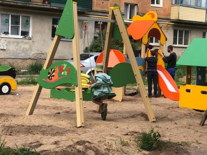 «Очень довольны площадкой. Дети уже вчера катались на качелях, вот сегодня делают горку. Мы писали Губернатору, чтобы нам помогли с детской площадкой и очень рады такому подарку».