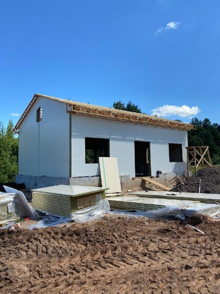 На сегодняшний день завершен монтаж стен, залит пол, ведутся внутренние работы. В ближайшее время начнется установка окон.