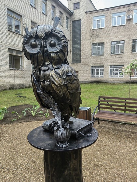 Сквер создан профессиональными дизайнерами и расположен на территории школы. Он представляет собой общественное пространство, в центре которого располагается памятник Сове - символу фундаментальных знаний. Ученики смогут тереть ее лапку на удачу перед контрольными и экзаменами. По периметру поставлены удобные скамейки, а также высажены деревья, кустарники и цветы.