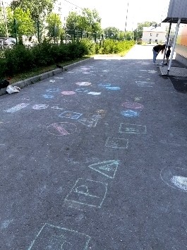 Детей разделили на команды, члены каждой из которых рисовали мелом на асфальте картинку по ПДД. А по окончании мероприятия организаторы вручили детворе светоотражатели.