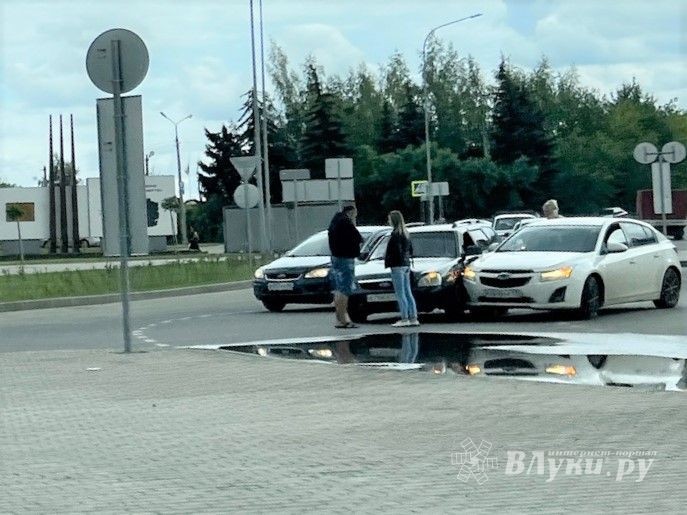 Сегодня, 26 июля, около 15:00 в Великих Луках на круговом перекрёстке на площади Калинина произошло ДТП.