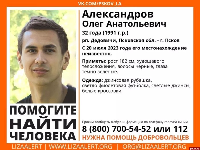Приметы пропавшего: рост 182 сантиметра, худощавое телосложение, черные волосы, темно-зеленые глаза. Мужчина был одет в джинсовую рубашку, светло-фиолетовую футболку, светлые джинсы, белые кроссовки.