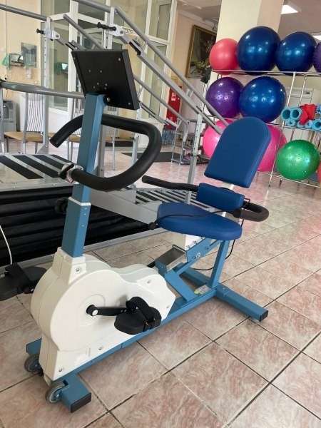 Велоэргометр с электропитанием - механотерапевтический тренажер, предназначенный для проработки нижних конечностей. Он может использоваться для восстановления мышечной активности ног после физических и неврологических травм, при неврологических заболеваниях спинного и головного мозга, при общей мышечной атрофии и потери мускульной силы, а также для устранения физиологической асимметрии.
