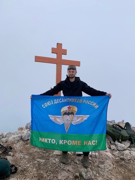 Великолучанин развернул флаг Союза десантников России на вершине горы Фишт