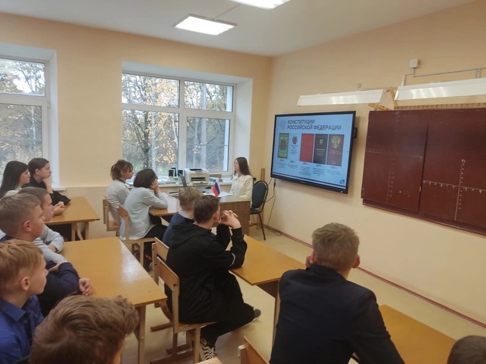 Помощник председателя суда Малахова Виктория Михайловна рассказала школьникам об истории принятия Конституции РФ, её особенностях и юридических свойствах, в игровой форме учащимися были усвоены основные права и свободы человека и гражданина.