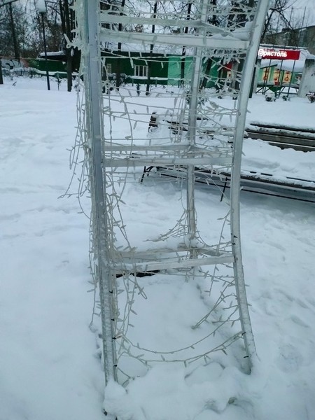 Неизвестные разорвали гирлянду на новогодней арке, установленной в сквере на проспекте Гагарина.