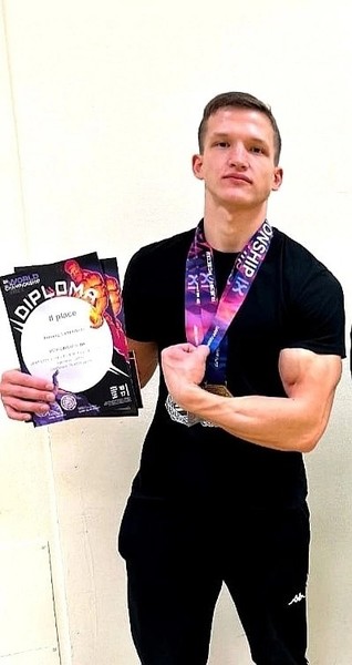 Студент 3 курса ВЛГАФК Илья Воронов стал абсолютным чемпионом. В дисциплине «Строгий подъём на бицепс» он поднял 72,5 кг, при собственном весе 65,8 кг.