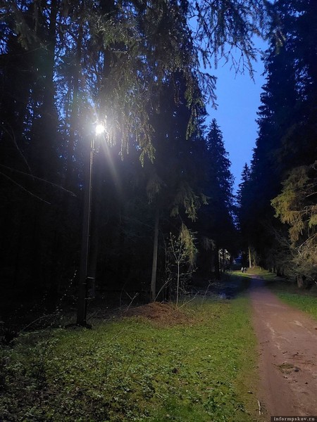 Уличное освещение установили вдоль лесной дороги до туристической базы в Пушкиногорском районе