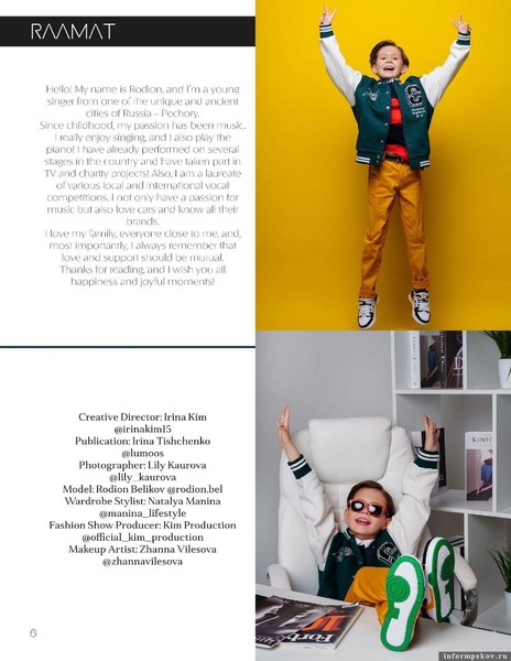Родин Беляков, ученик второго класса, на страницах французского издания делится с читателями рассказом о своих увлечениях музыкой и вокалом. Он, несмотря на юный возраст, является лауреатом нескольких вокальных конкурсов, среди которых конкурс Международной академии музыки Николая Агутина.