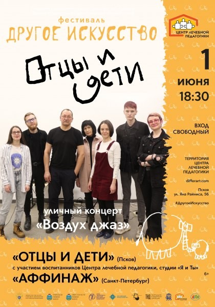 Напомним, фестиваль «Другое искусство» завершится большим концертом под открытым небом на территории Центра лечебной педагогики (ул. Я. Райниса, 56). В программе: рок-группы «Аффинаж» (Санкт-Петербург) и «Отцы и дети» (Псков) в инклюзивном составе.