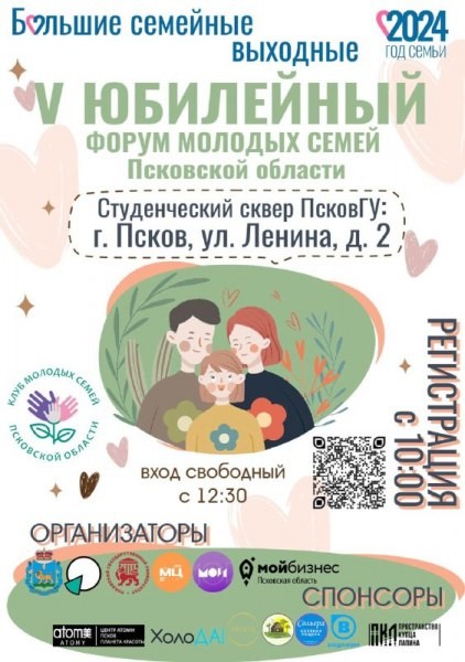 Форум пройдет в сквере ПсковГУ (ул. Ленина, д. 2). В программе — просветительские мероприятия, мастер-классы, выступления экспертов в семейной сфере, концертные программы и презентации успешных семейных бизнес-проектов, а также специальные программы для развития духовно-нравственных ценностей семьи.