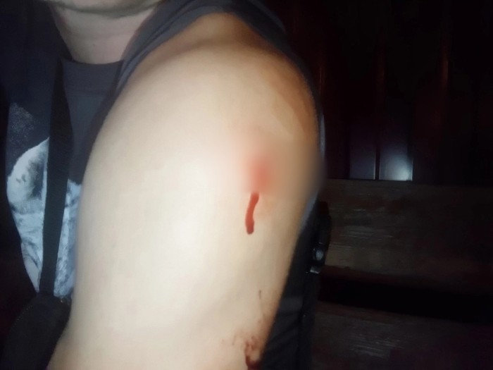 «Ехал со стороны садика на Пушкина, 5, поворачиваю на Комсомольскую, и что-то в плечо влетело. Не понял сначала, а потом до моста доехал, остановился, рука отваливается», – рассказал пострадавший.