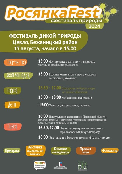 Экологический фестиваль РосянкаFEST пройдет в этом году 17 августа в деревне Цевло, Бежаницкого района (0+).