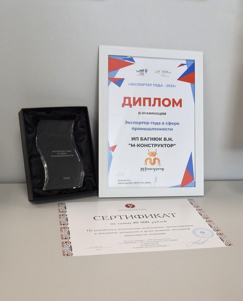 Сразу несколько предприятий, пользующихся услугами Центра поддержки экспорта, боролись за право стать лучшим «Экспортером года в сфере промышленности», но статуэтка, денежный сертификат и диплом победителя оказались в руках коммерческого директора завода «М-Конструктор» Артема Багнюка.