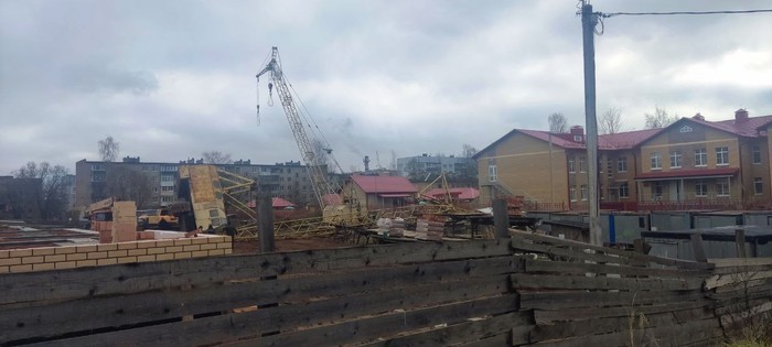 В Великих Луках на строительной площадке многоквартирного дома рядом с детским садом №26, расположенным по адресу ул. Первомайская 23а рухнул кран.