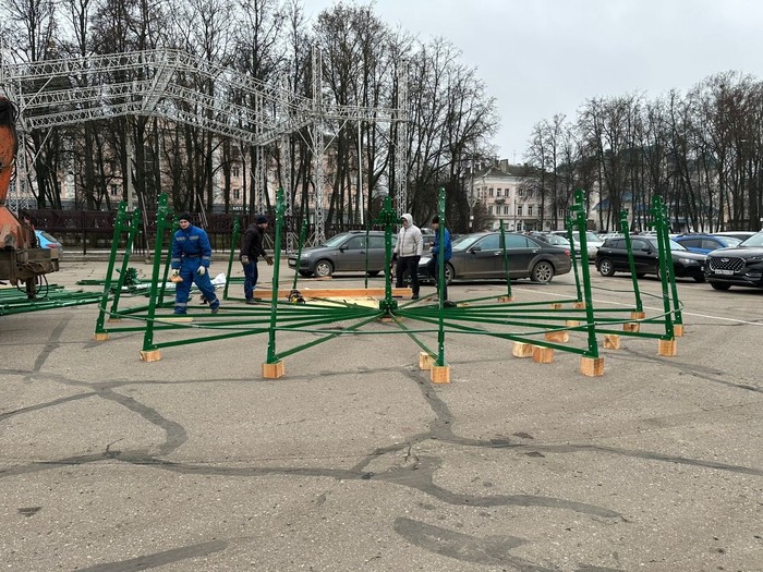 В Великих Луках начался монтаж главной городской ёлки