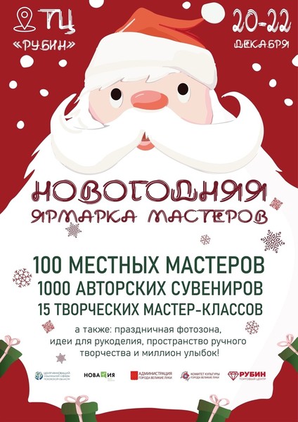Великолучан приглашают на ярмарку мастеров, которая пройдет с 20 по 22 декабря, сообщается в группе «NEW WORK —Творческая мастерская в Великих Луках».