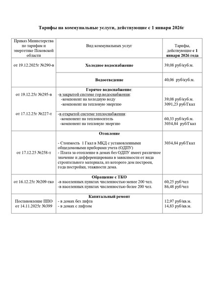 С 1 января 2026 года в Великих Луках изменятся тарифы на коммунальные услуги.